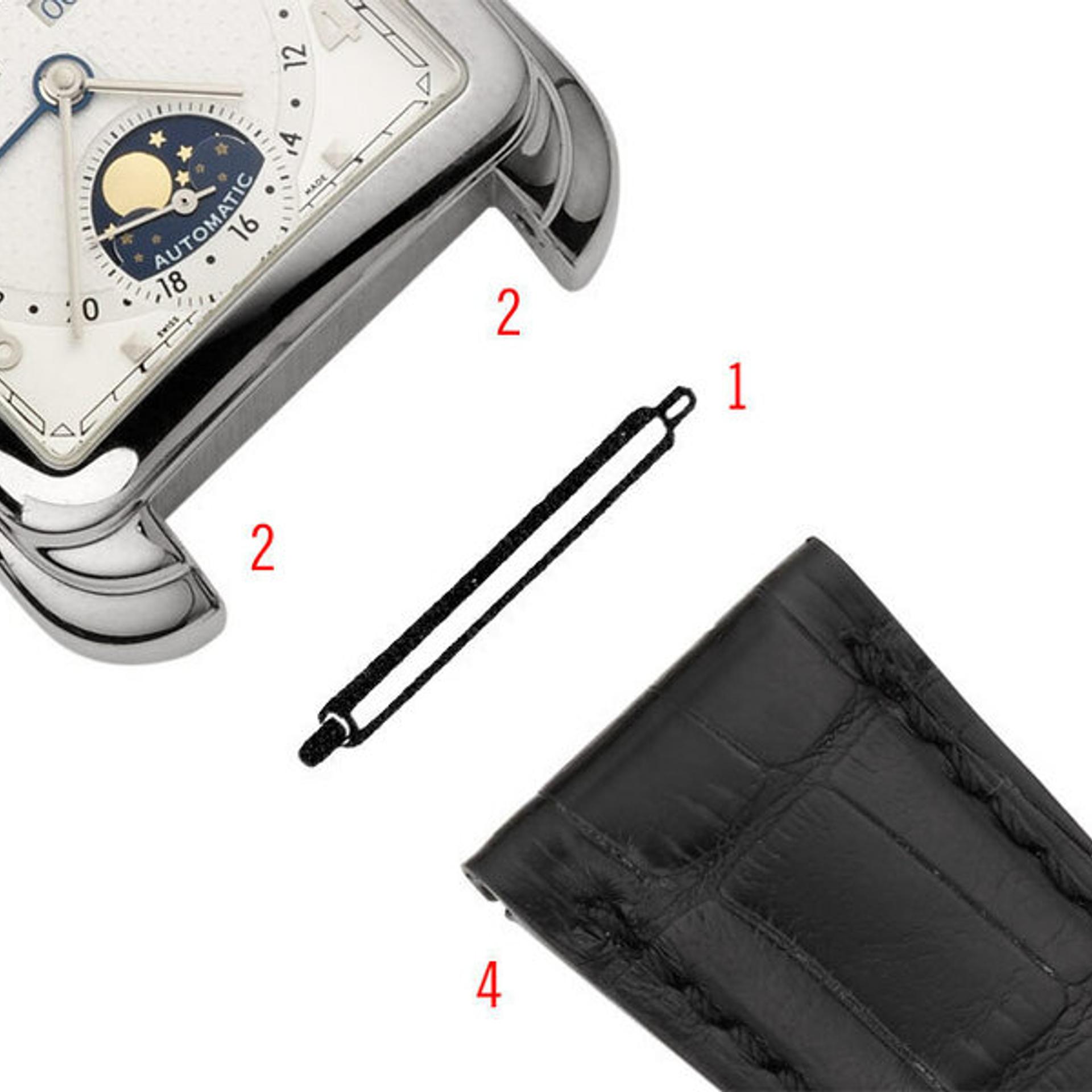 A thin metal rod fixed between the case horns for attaching the watch strap.