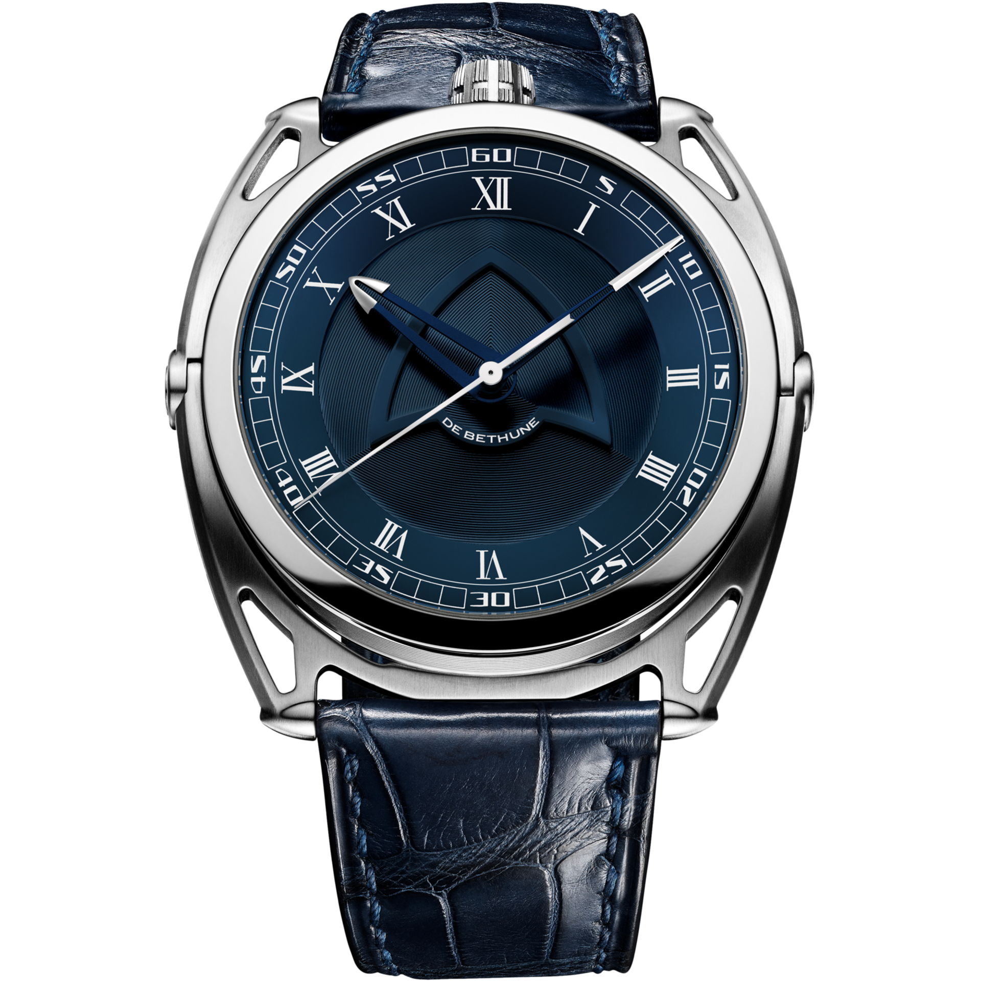 The DB27 Titan Hawk V2 is De Bethune's new entry-level watch. The design is familiar, inspired by the DB27 collection; the movement, on the other hand, is new. The in-house AUTOV2 calibre features the brand's tried and tested titanium balance wheel with white gold inserts. A titanium and tungsten oscillating weight can be relied on to provide 60 hours of power reserve. As for the rest – the patented floating lugs, the crown at 12 o'clock and flame-blued hands –, fans will recognise the trademarks of a De Bethune watch. This Titan Hawk also comes with a midnight blue dial inside a polished titanium case.