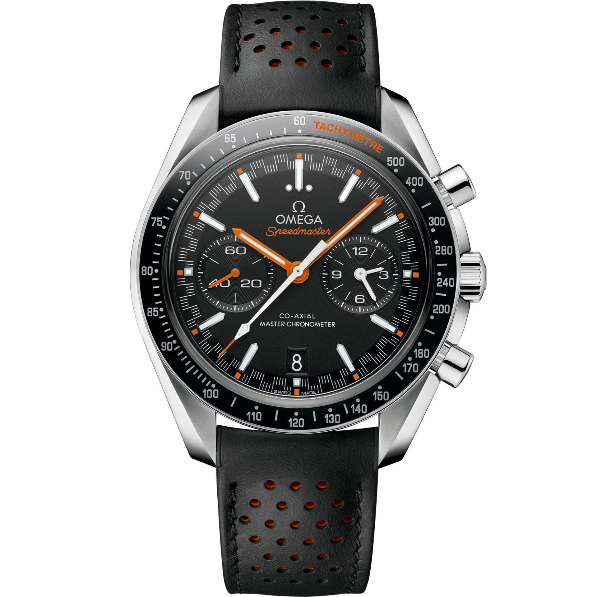 Speed and performance are of the essence in motor racing, and both have been transposed to this new Speedmaster chronograph. The minute track reprises the "chequered" design associated with racing, and already in evidence on a 1968 Speedmaster to give drivers better readability. A mat black dial and a polished ceramic bezel featuring a brushed Liquidmetal tachymeter scale, combined with contrasting orange accents, put this Speedmaster Racing Master Chronometer on the fast track to success. The "engine" driving this Speedy to first place on the podium is Omega's calibre 9900 with Master Chronometer certification, a standard of excellence validated by the Swiss Federal Institute of Metrology (METAS).