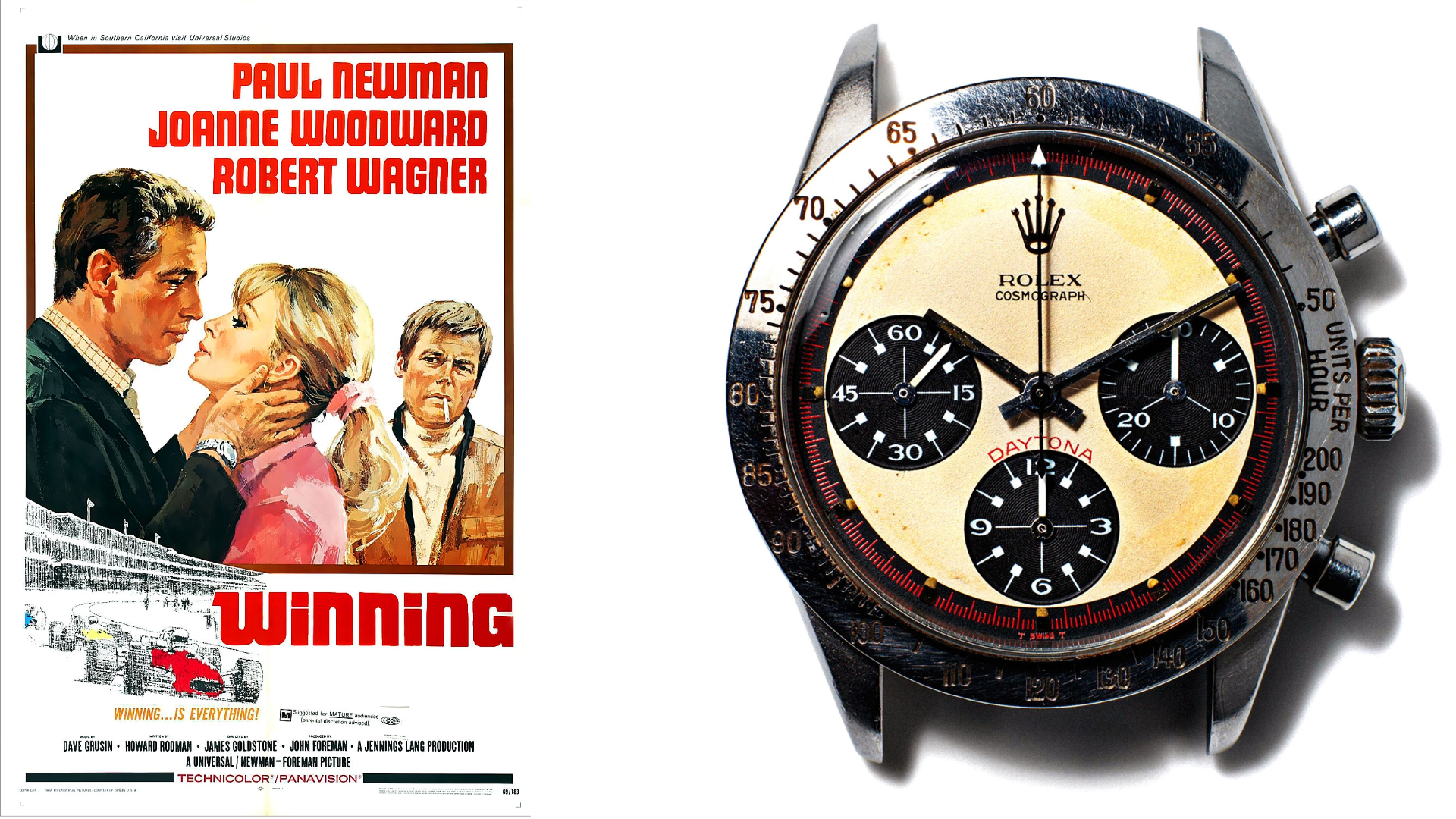Quelque trente ans plus tard, un autre chronographe allait également entrer dans la légende. Une montre signée Rolex, dont la notoriété doit beaucoup à l’immense acteur que fut Paul Newman et dont la touche « féminine » en a fait un garde-temps d’exception. Tout démarre dès 1902 à Daytona Beach, dans le creux d’une plage de Floride où se disputent les premières courses qui marqueront l’histoire des sports mécaniques. Rolex est très rapidement de la partie et devient même « montre officielle » en 1959 lorsque le « terrain de jeu » se déplace au nouveau Daytona International Speedway. Bien décidé à conquérir le marché américain, Rolex présente en 1963 son fameux Cosmograph, un chronographe conçu comme une montre instrument dédiée aux professionnels de la course automobile, arborant pour certains un cadran « exotique » avec compteurs noirs sur fond blanc ou l’inverse. C’est précisément ce modèle qui devait connaître la célébrité, bénéficiant d’un coup de pouce inattendu du film Virages (titre anglais : Winning), sorti en 1969. En vedette, Paul Newman y arbore sa Cosmograph au cadran « exotique », un cadeau de son épouse Joanne Woodward, qui avait fait graver au dos du boîtier « Drive Carefully Me ». Parmi les différentes Cosmograph Daytona propriétés de Paul Newman, c’est précisément cette pièce qui devait affoler les compteurs en 2017. Vendue aux enchères pour 17,8 millions de dollars, elle représente le record absolu des encans horlogers de montres-bracelets.