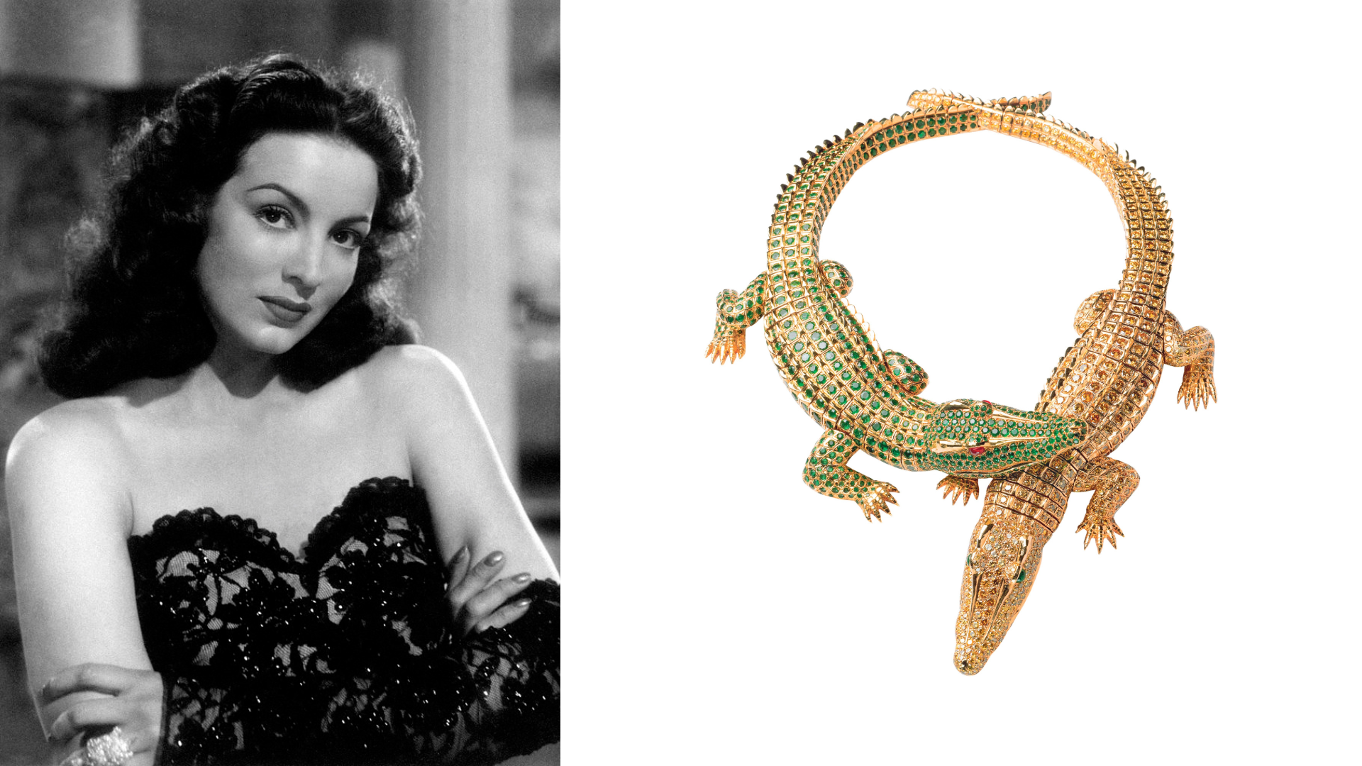Cette décennie des années 1960, marquée par une intense créativité, allait être propice aux nouvelles idées et notamment à celles insufflées aux Maisons horlogères par les stars et personnalités du moment. C’est notamment le cas de Cartier avec María Felix, actrice et chanteuse mexicaine devenue incontournable dans l’industrie cinématographique latino-américaine du milieu du siècle dernier. Aux côtés de Cartier, l’actrice connue pour ses prises de position contre les conventions sociales imposées aux femmes mexicaines de l’époque, a contribué à la création de montres et bijoux totalement innovants, dont le fameux collier crocodile de 1975.