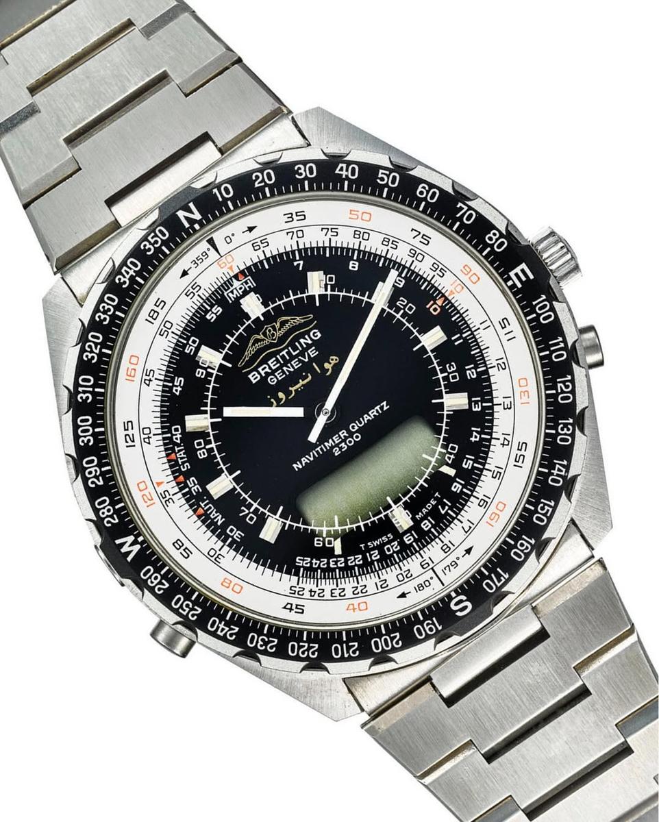 Une version remarquable de la Navitimer 2300 Jupiter est le modèle conçu pour l’armée de l’air iranienne, arborant une inscription en farsi signifiant « airforce ». Cette version fut utilisée par les pilotes iraniens pendant la guerre contre l’Irak dans les années 1980.
