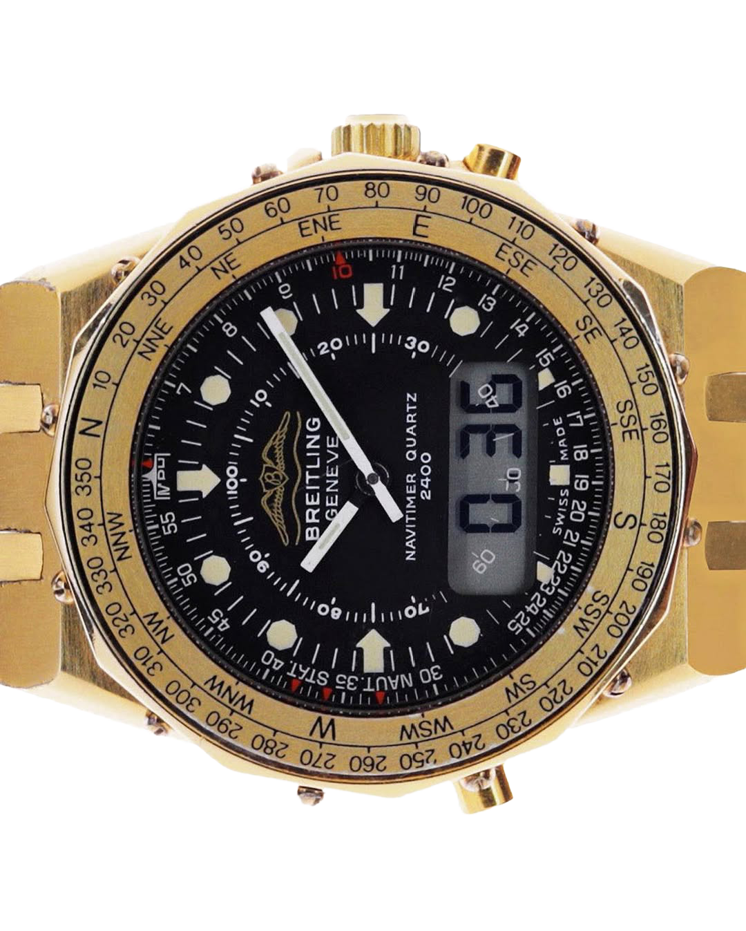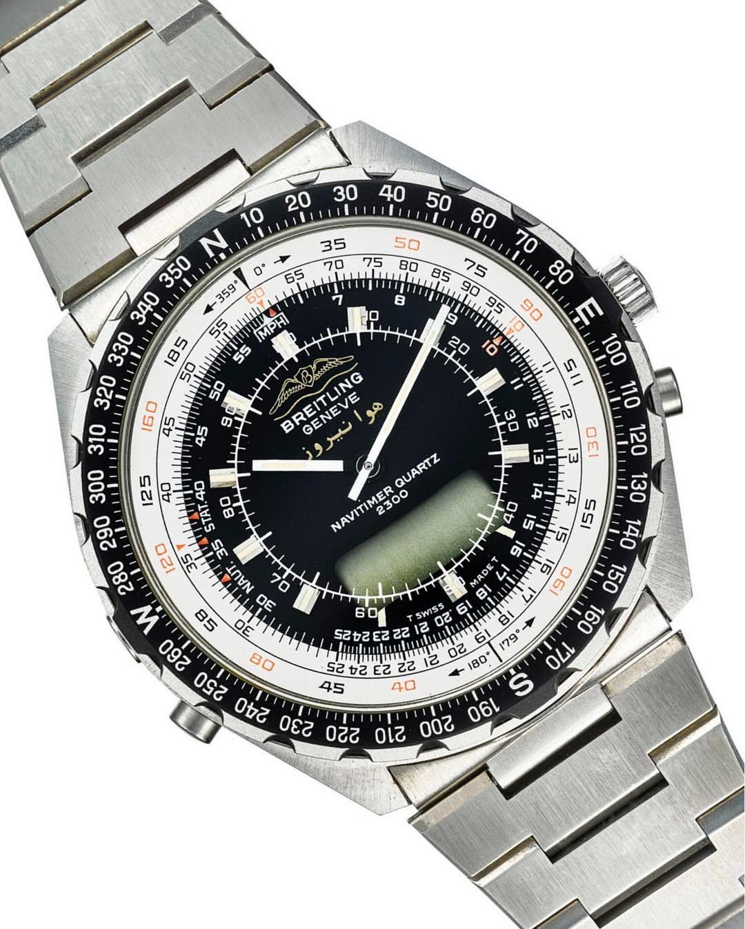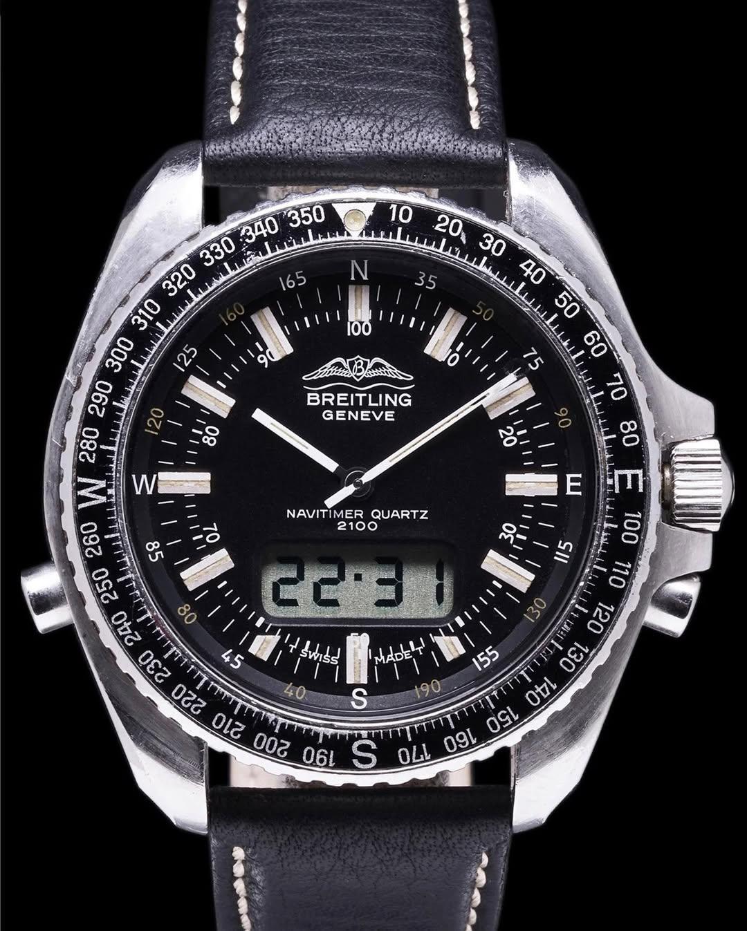 Breitling a profité de la toute nouvelle technologie du quartz de l’époque pour proposer des modèles originaux. Ces Navitimer combinaient affichage numérique et analogique, fonction chronographe, lunette à règle à calcul, boussole et parfois même fonction GMT.