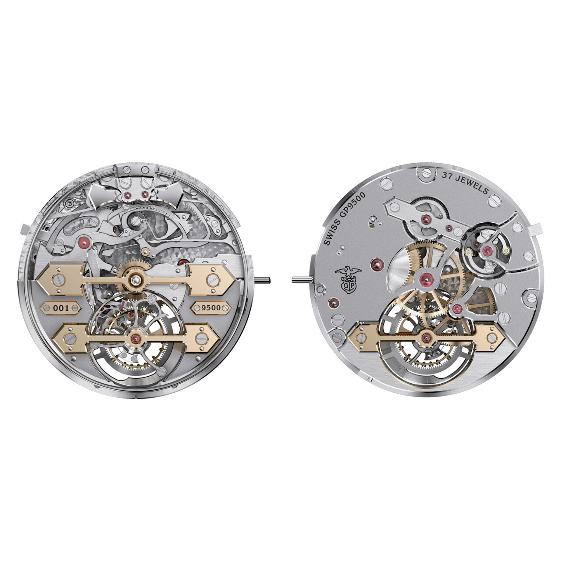 Girard-Perregaux has entirely rethought the minute repeater movement in terms of both its construction and its operation, so as to reveal the striking mechanism on the dial side, alongside its famous Tourbillon with Gold Bridges. The complex and original solution adopted is pleasing on both visual and auditory levels. The watch chimes loudly and clearly, even when on the wrist. To ensure perfect harmony, the hammers feature a design inspired by the gold bridges. The master watchmaker devotes around 270 hours of work to assembling and adjusting this magnificent mechanism housed in a pink gold case with a domed sapphire back that serves as a sounding box.